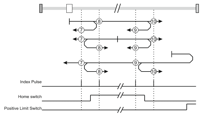 Homing on the Home Switch using Limit Switches and Index Pulse.